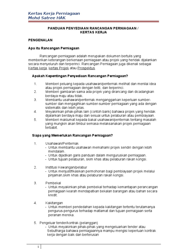 Contoh rancangan perniagaan dari kami: Penyediaan kertas kerja untuk semua jenis perniagaan. Lagi satu saya ingin nasihatkan, kalau kertas kerja perniagaan yang saya tak ada contohnya tu, misalnya tadi nak buat bengkel kereta tapi saya takde contohnya, cubalah rujuk sendiri panduan format dan. Contoh kertas kerja rancangan perniagaan mp3 & mp4. 33 contoh kertas kerja perniagaan.